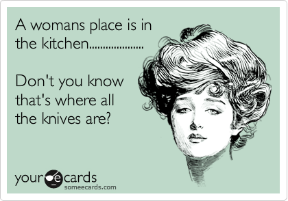 To suggest that anyone, male or female (although, even by the title of the thread and the pictures you have posted, you DO) has a 'place' is kind of dismissive, antagonistic, old-fashioned, outmoded etc etc etc...