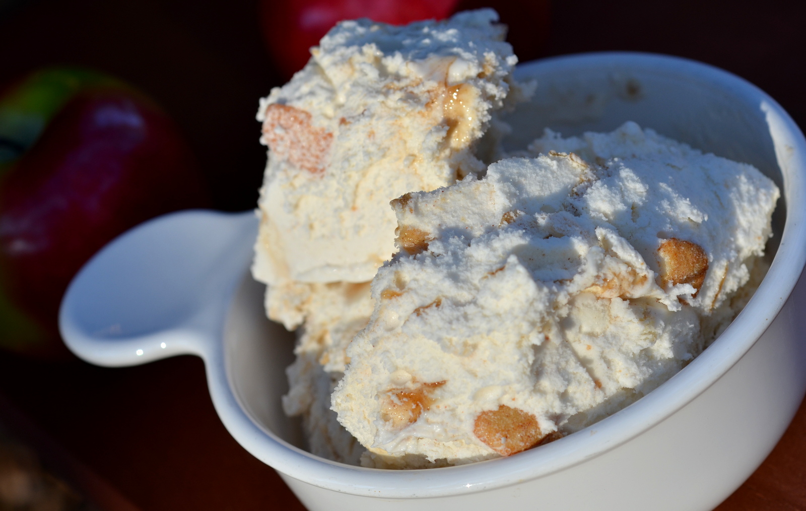 Lately, it's been tortoni, which isn't exactly ice cream, but semifreddo, in Italian. It's amaretto, rum, vanilla, nutmeg, and custard.