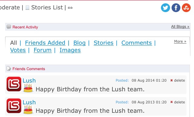 1) I have to agree. The graphics could be updated. I wouldn't change the color scheme, because it has become lush stories, but especially the forum looks very out of date and doesn't seem to fit with the rest of the site. I also wonder if there is a lush logo. I don't think you need something fancy just something like a white LS on red ground as a part of the lush brand. It could be used in many ways. For example as an avatar for the birthday posts that non avatar looks a bit weird or in promotional things like the twitter or Facebook site or in articles that mention lush.